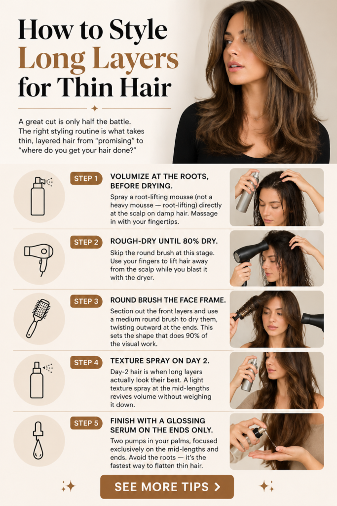 A great cut is only half the battle. The right styling routine is what takes thin, layered hair from “promising” to “where do you get your hair done?”