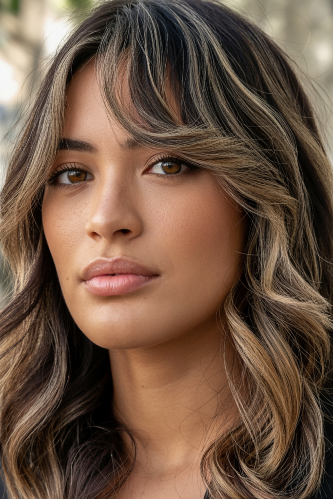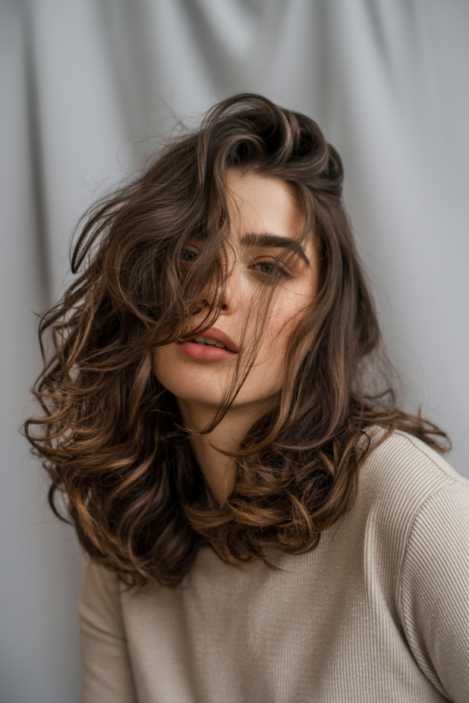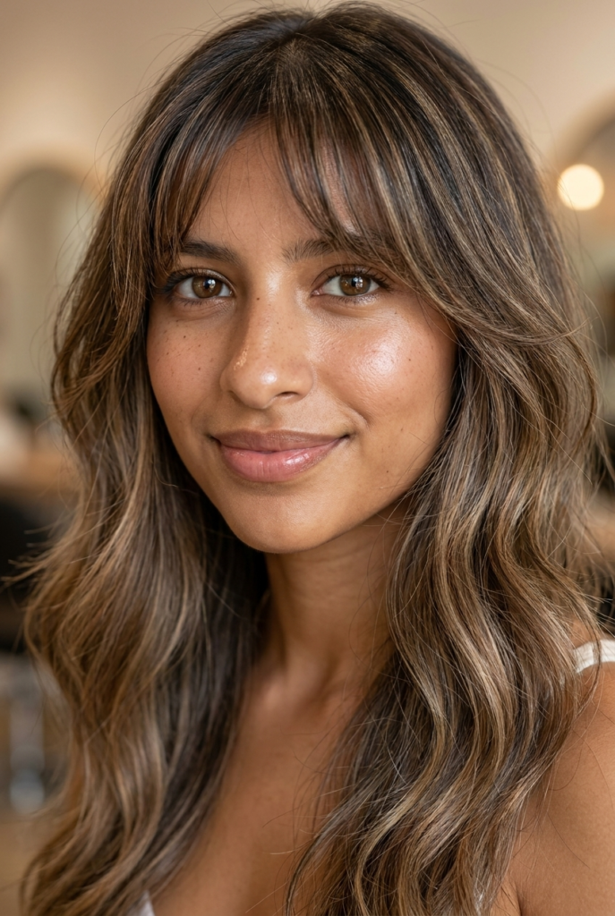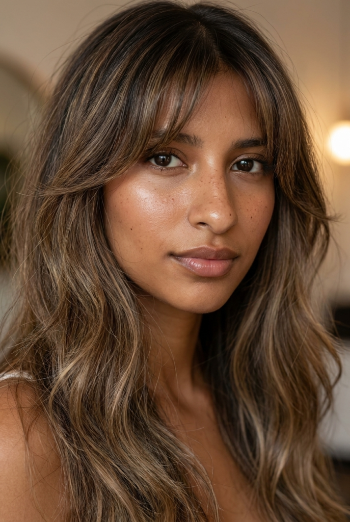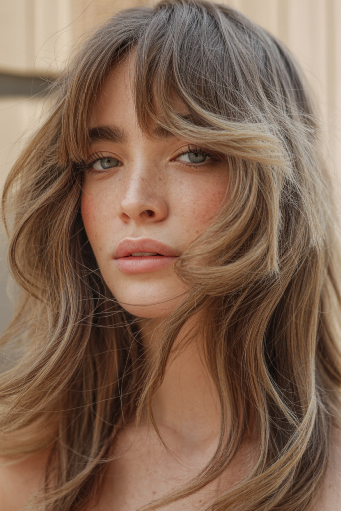 Side-swept bangs are quietly making a comeback. Paired with long layers, they add asymmetry and a flirty, ’00s-but-grown-up vibe.