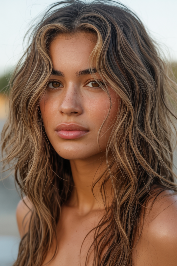 Who it suits: All face shapes; works best on naturally wavy hair. Why it works for thin hair: Waves add 30%+ visual volume instantly. Quick tip: Skip the curling iron — sea salt spray + scrunch + air dry.