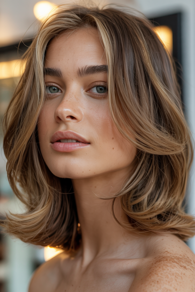 Who it suits: Any face shape, any hair color (works on dark and light). Why it works for thin hair: Color contrast = perceived volume. Quick tip: Ask for the lightest pieces to start at the cheekbone, not the temple.