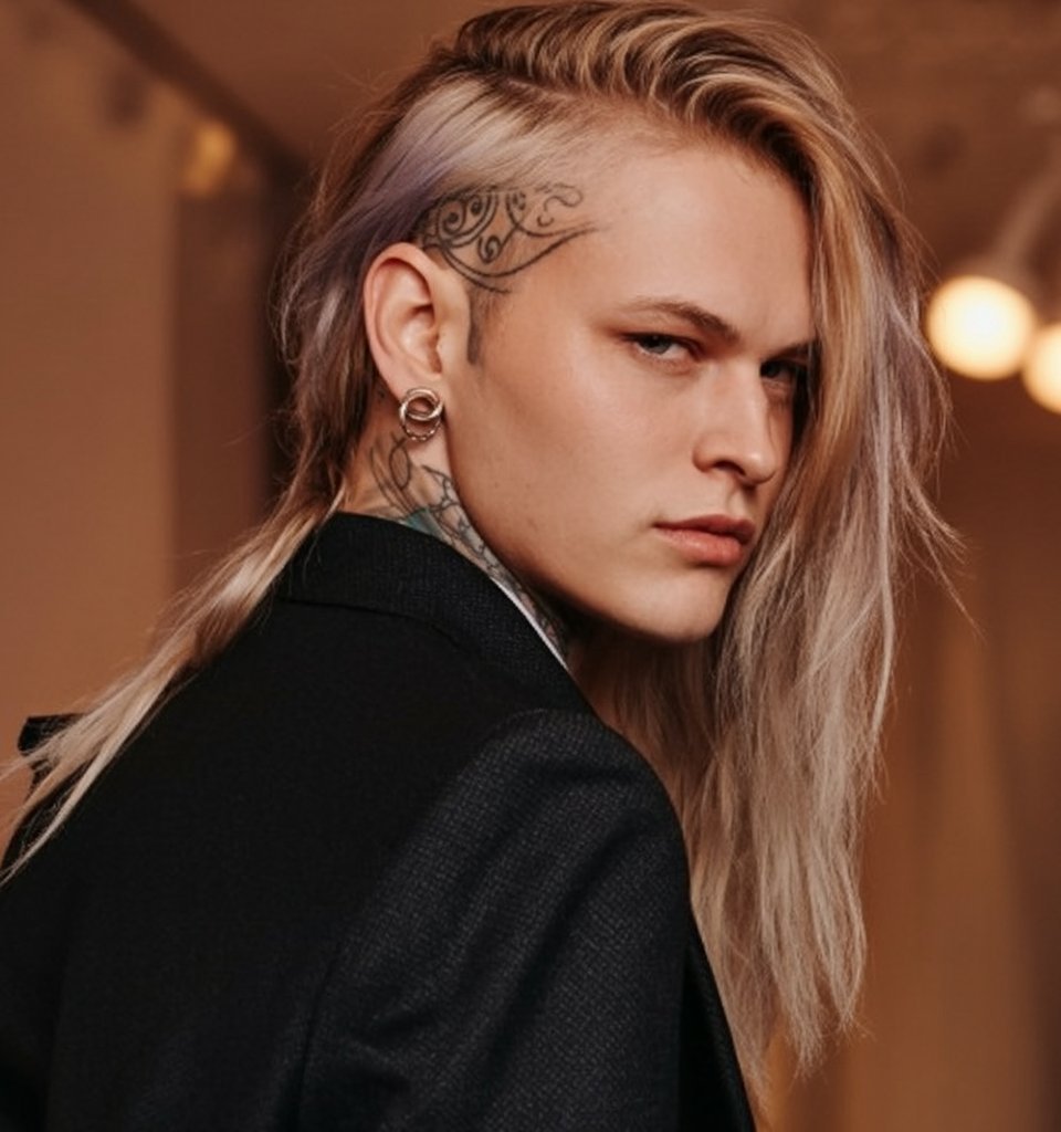 This style pairs long, sleek strands with a sharp undercut for high contrast and high impact. The blonde color and side-swept bangs enhance facial features while keeping things soft and approachable. It’s the ideal look for anyone wanting to mix bold edge with everyday comfort.
