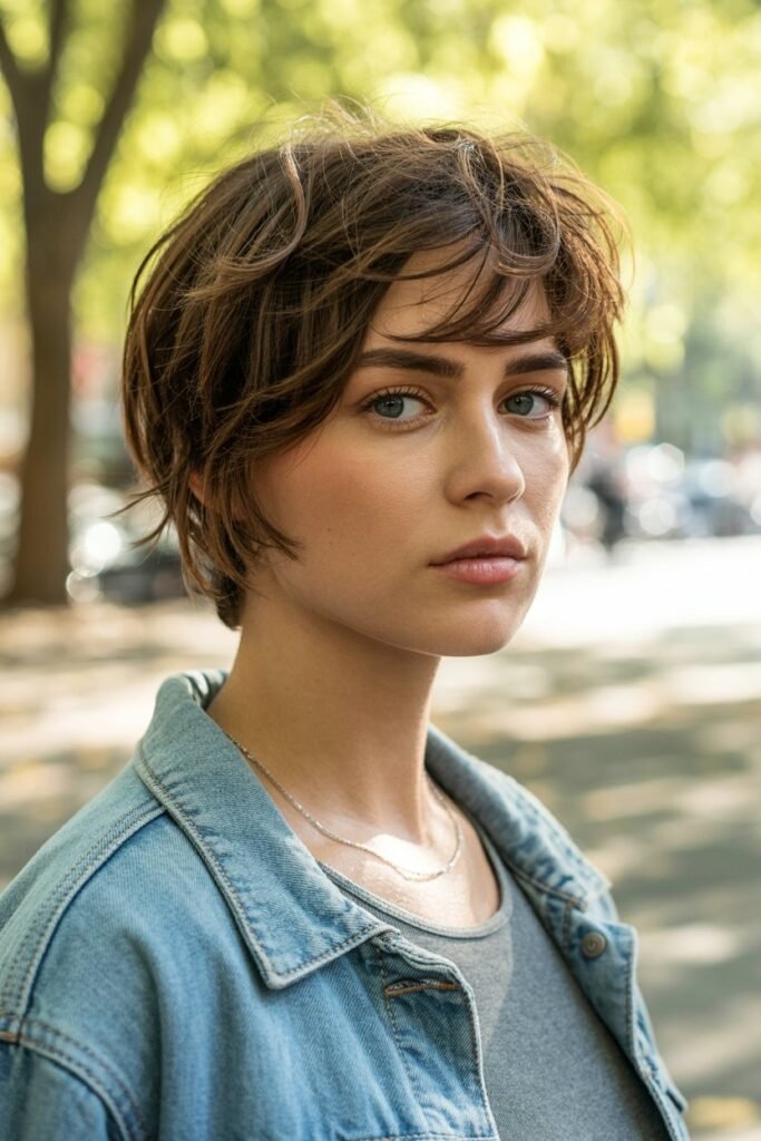 Short Tomboy Haircut with Textured Layers and Side-Swept Bangs