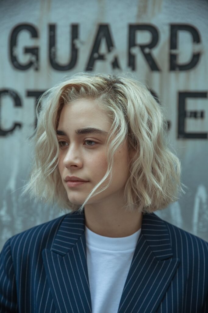 Textured Wavy Bob with Side-Swept Bangs for Short Hair Tomboy Style