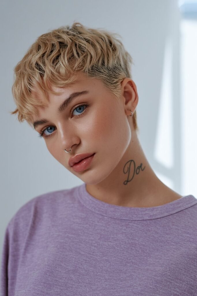 Short Curly Tomboy Hair with Effortless Waves and Playful Texture
