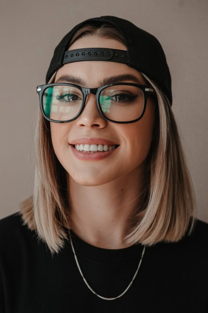 Shoulder-Length Tomboy Hairstyle with Subtle Layers and a Casual Cap