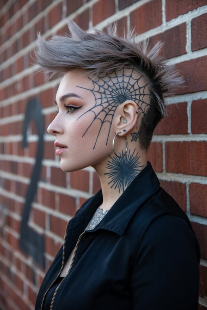 This bold style pairs spiky texture on top with a detailed undercut for maximum impact. Intricate designs shaved into the sides add a custom edge, while the contrast in lengths creates dimension. A fresh, fearless take on tomboy style—perfect for those who want to stand out without high upkeep.