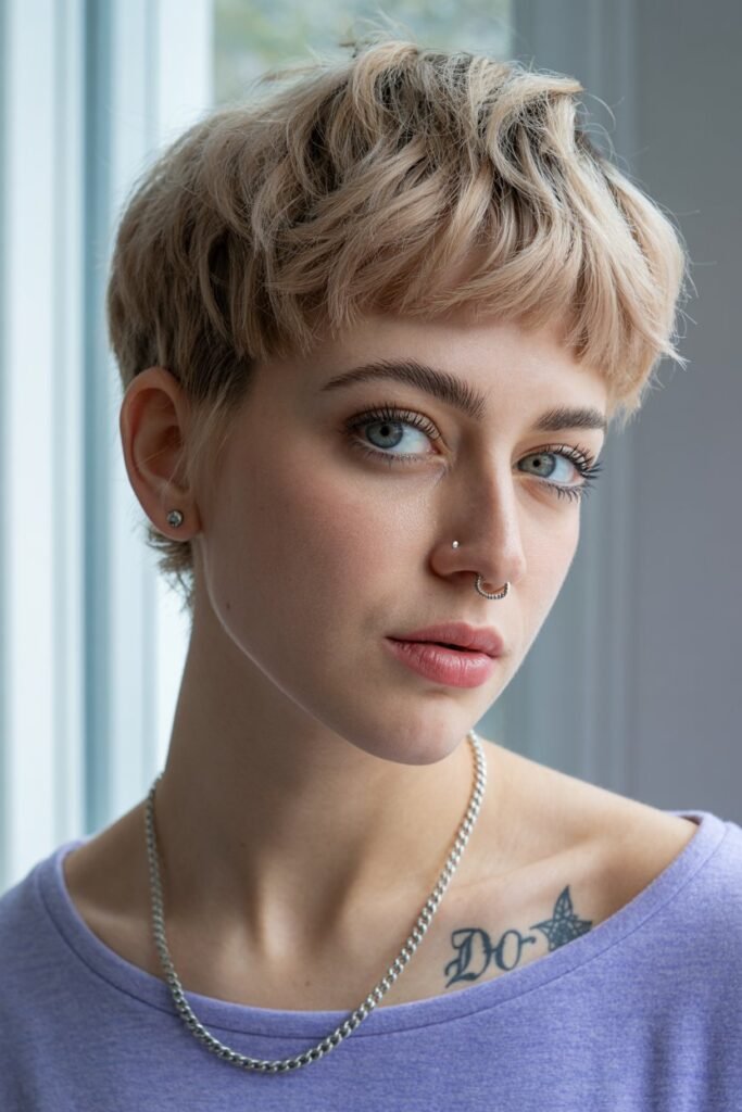 - 12 Textured Pixie Cut with Edgy Layers in Short Hair Tomboy Style