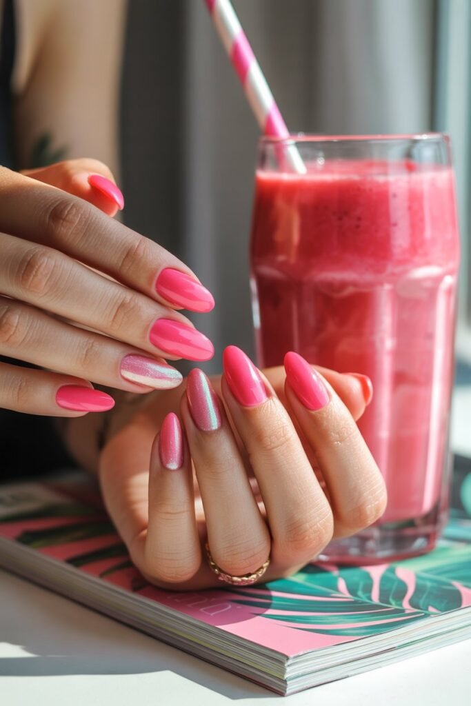 Vibrant and fun, watermelon pink is made for summer lovers. This bold shade radiates energy and confidence, making your nails stand out in the best way. Think of it as the brighter cousin of coral—juicier, louder, but just as wearable.