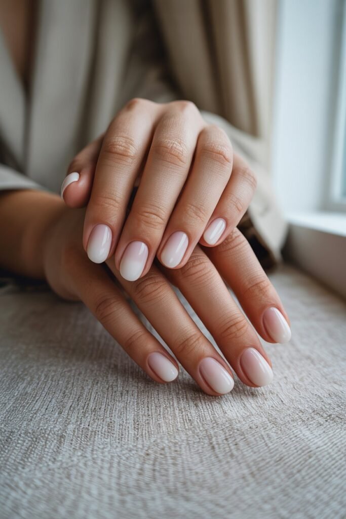 Ombre nails are always a good idea, especially when done in soft blush tones. This gradient look, transitioning from natural pink at the base to soft white at the tips, creates a delicate, seamless effect that’s incredibly flattering.