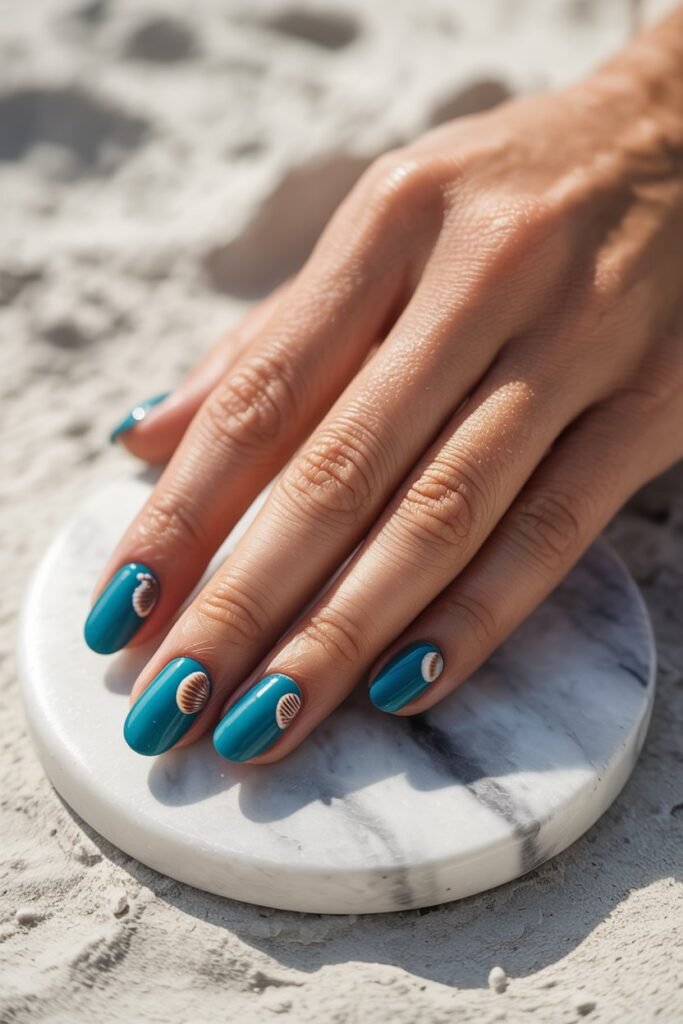 You don’t even need extra designs or nail art—the color alone does all the talking. Ocean blue nails look amazing on all nail lengths and shapes and are perfect for beach vacations, pool days, or just bringing the vacation vibes to your everyday routine. It’s summer in a bottle—fresh, fun, and full of movement.