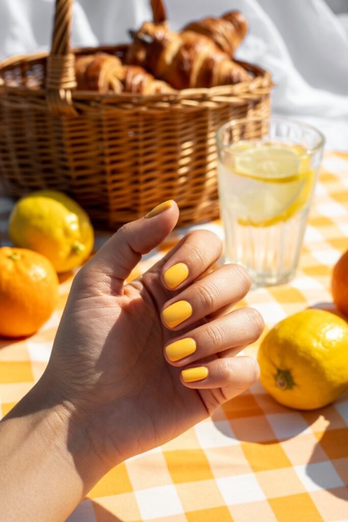 Nothing screams summer like the cheerful pop of lemon yellow on your nails. It’s bright, bold, and instantly uplifting—like sunshine in nail polish form. Short nails in pastel or butter yellow shades feel playful and approachable, while still being fashion-forward.