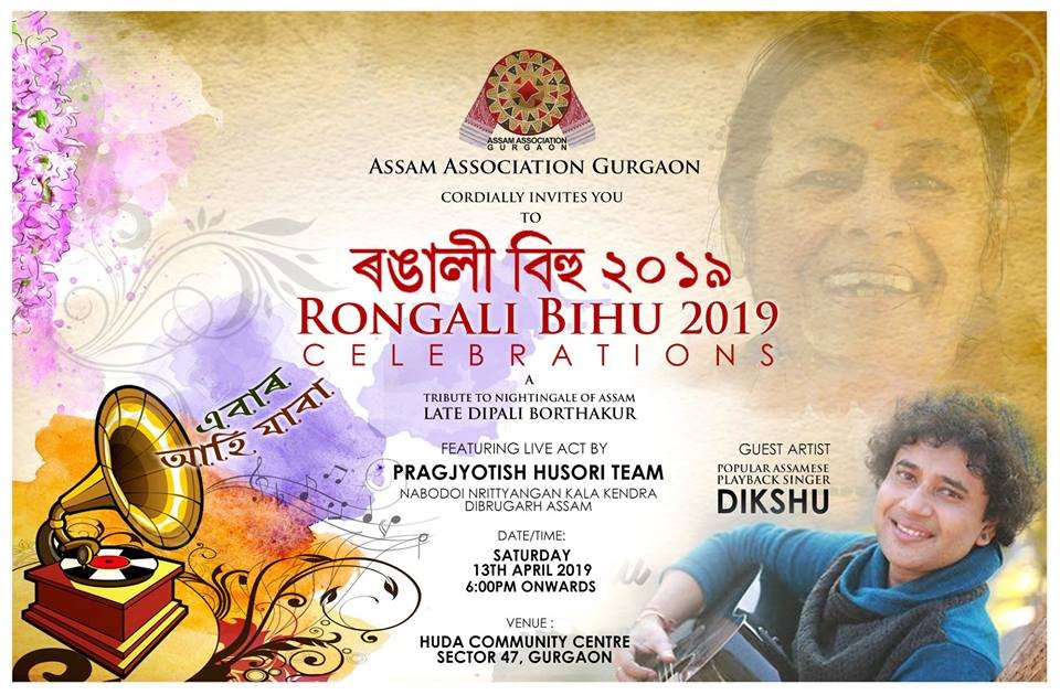 The Assam Association Gurgaon is celebrating Rongali Bihu on April 13, 2019. Playback singer Dikshu and Pragjyotish Husori Team will be the main attraction of the cultural event. Other than the cultural event there will a Painting Competition for children, Poem Recitation and Bihuwoti Competition.
